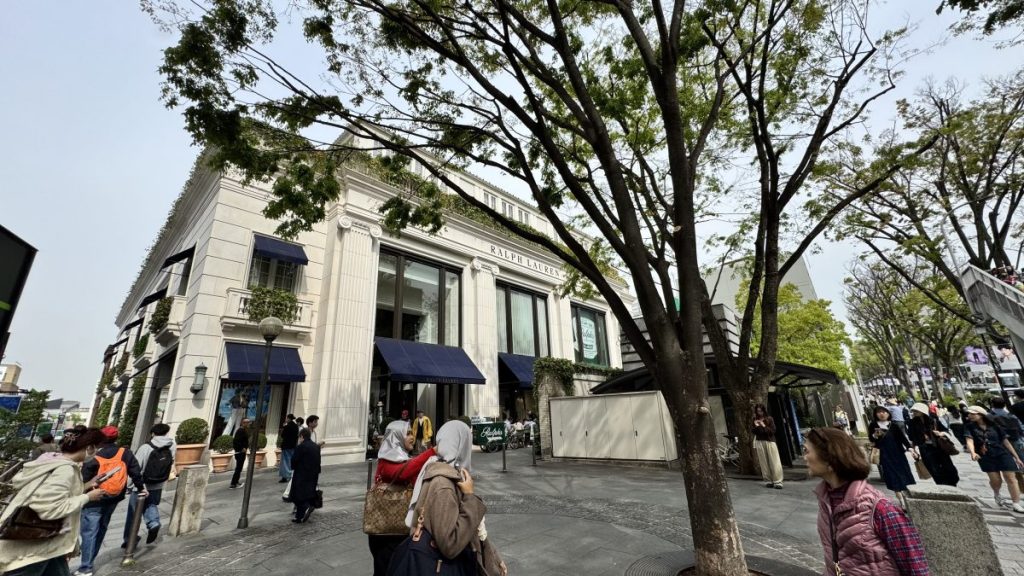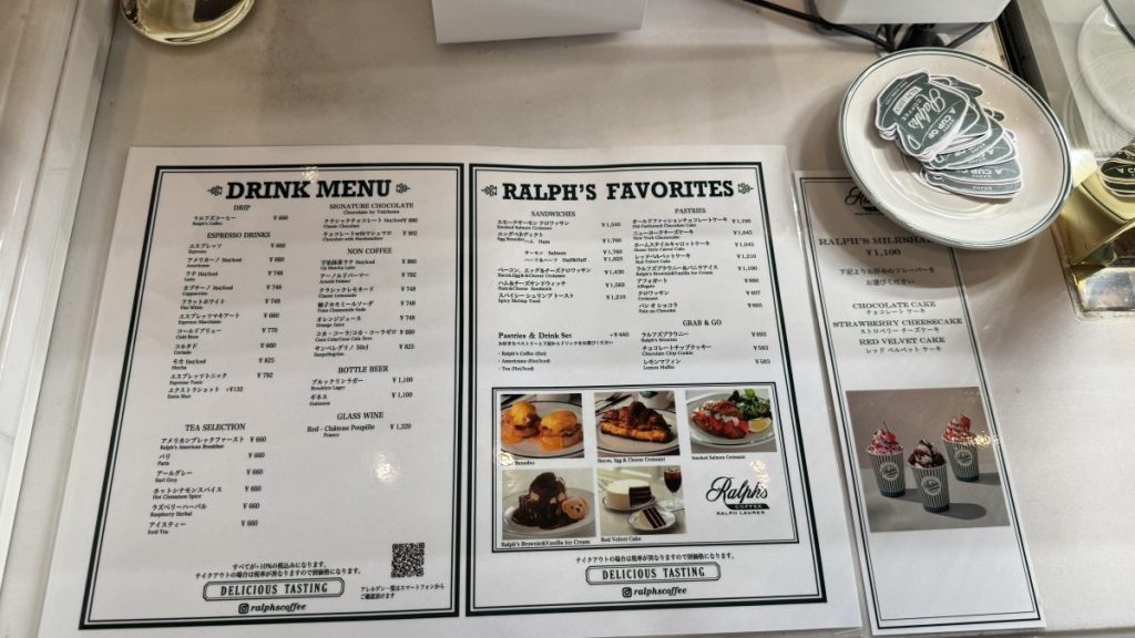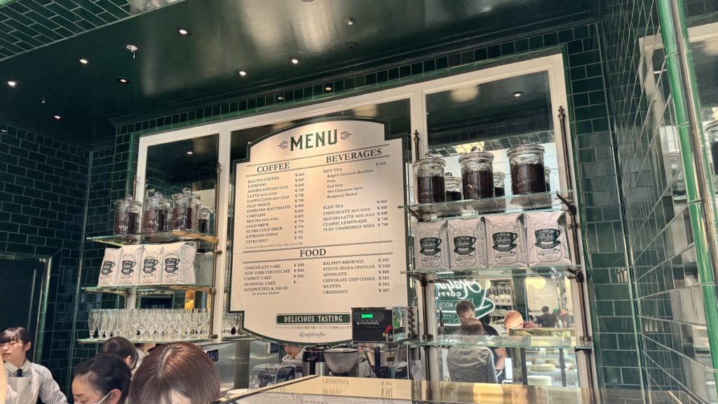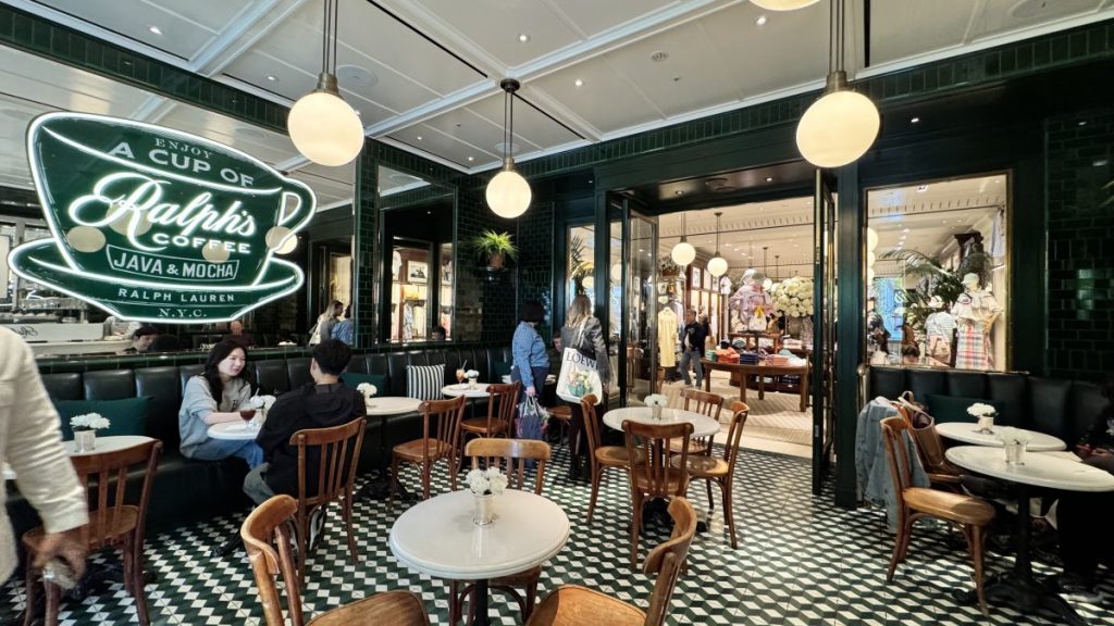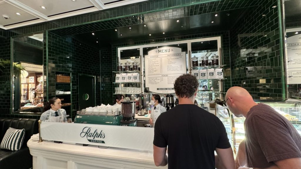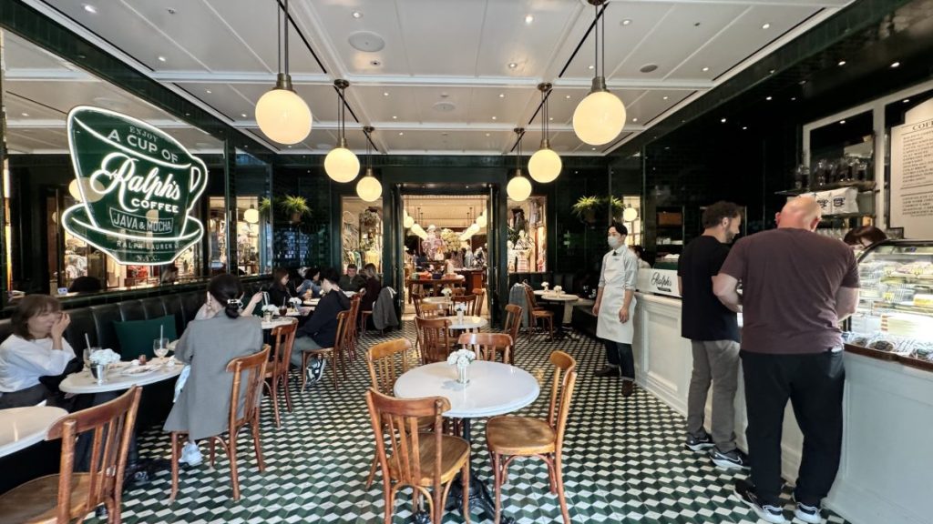 ラルフズコーヒーは、ラルフローレンの路面店の隣に位置しており、建物全体がおしゃれな空間。