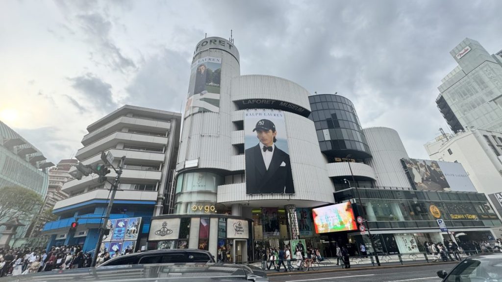 ラフォーレ原宿のポスターも今は、ラルフローレン。フォーマルにキャップを合わせるスポーティーミックスのスタイルが素敵です。